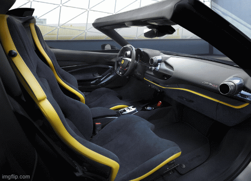 Bellissimi i cerchi, ispirati alle vetture sport prototipo, e alcuni dei dettagli recuperati dalle altre vetture Ferrari, come i fanali posteriori ispirati alla Roma. Sobri gli interni, con una punta retro nei sedili. Capiamo meno invece le rifiniture gialle… che siano scaramantiche per il cliente taiwanese?