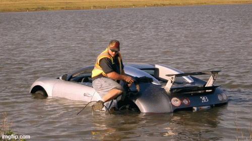 La prima è la Veyron che una decina di anni fa fece il giro del mondo, con tanto di video youtube, riuscendo a sbandare su un rettilineo a bassa velocità e a finire in un lago poco profondo, guidata da un distrattissimo proprietario.