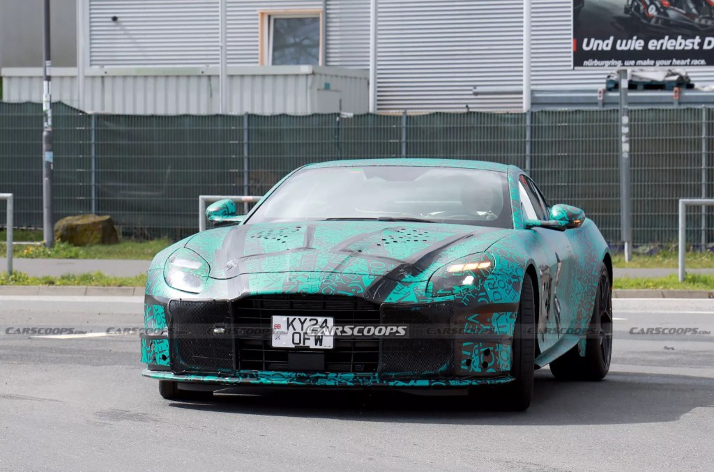 Le belle foto fatte da Carscoops mostrano un frontale e una linea decisamente più classici rispetto a quanto si ipotizzasse l’anno scorso, in cui sembrava che la Vanquish si sarebbe avvicinata maggiormente alla futuristiche linee di Valhalla e Valkyrie che alle più classiche GT.