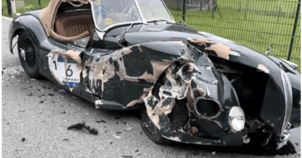 Di ritorno dalla prima edizione austriaca della 1000 Miglia Warm Up, un grave incidente danneggia la splendida Jaguar XK120 del team composta da Giuseppe Cerbone e Nicolò Bottini Bogdani. Lo scontro con una Opel Insigna smererebbe essere dovuto alla distrazione dell’autista di quest’ultima.