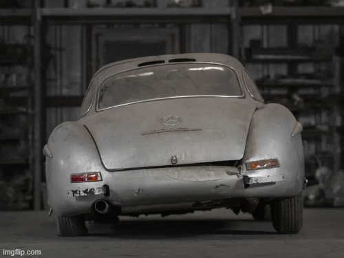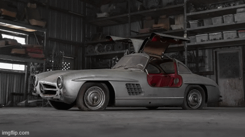 Nel 1976, la Gullwing fu venduta a Rudi Klein, noto collezionista di auto, che la nascose nella sua officina, protetta dalla polvere del tempo. A differenza di molte auto da corsa dell’epoca, spesso incidentate o modificate, questa 300 SL visse una vita quasi indisturbata. Klein non la mostrò mai in pubblico e la mantenne nel suo stato originale, con pochi danni, tra cui una vistosa ammaccatura causata da un incidente con il suo muletto.