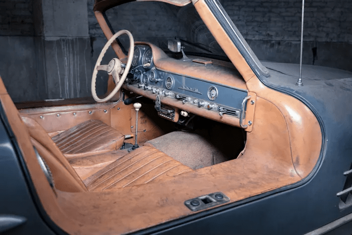 Dunque, riportiamo un po’ id numeri per capirete la rarità di questa auto: Mercedes-Benz produsse 1.400 esemplari di 300 SL Gullwing tra il 1954 e il 1957, di questi soltanto 29 furono realizzati con carrozzeria in alluminio, mentre appena 106 vennero consegnati in Graphite Grey, uno dei colori più eleganti e sottovalutati del modello, che sul grigio puntava molto più sul color argento. Ancora più rari sono gli esemplari equipaggiati con tutte le opzioni sportive disponibili all’epoca. E qui la matematica diventa davvero spietata.